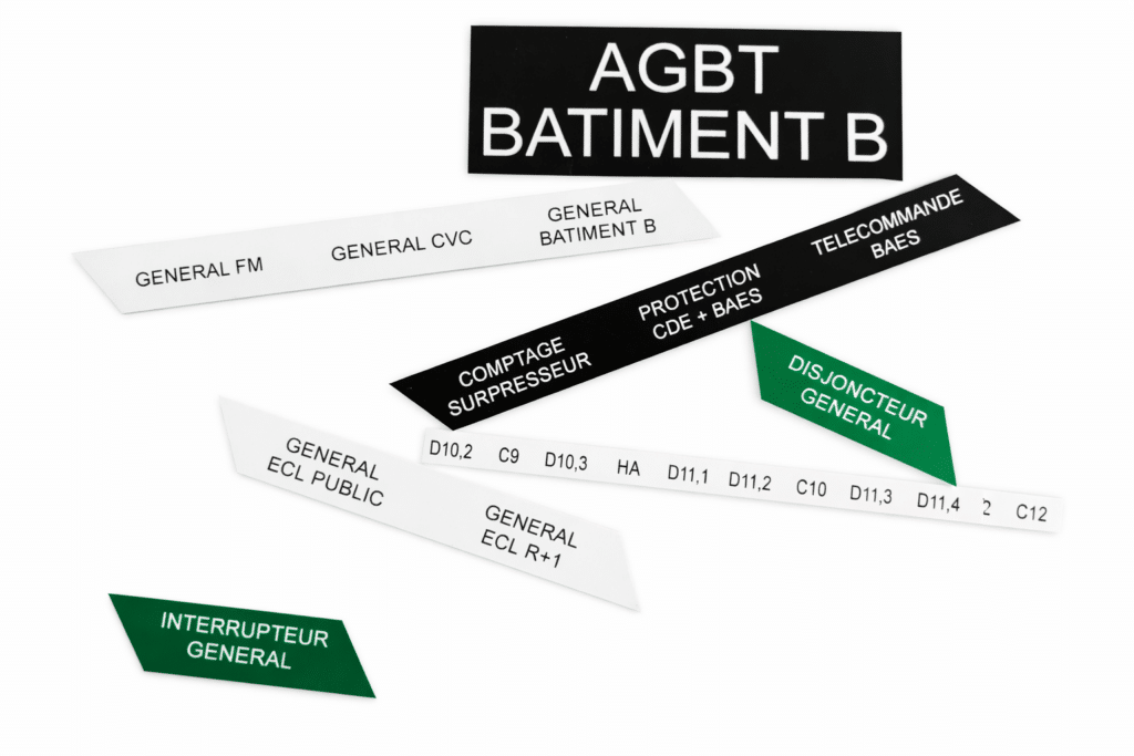 Un tableau électrique correctement identifié permet une lecture rapide et une intervention efficace en cas d’incident. Le marquage permanent est d’ailleurs une exigence conforme à la norme NF C 15-100. Contrairement aux inscriptions au feutre ou aux autocollants classiques, les étiquettes gravées garantissent une tenue durable et une parfaite lisibilité dans le temps.